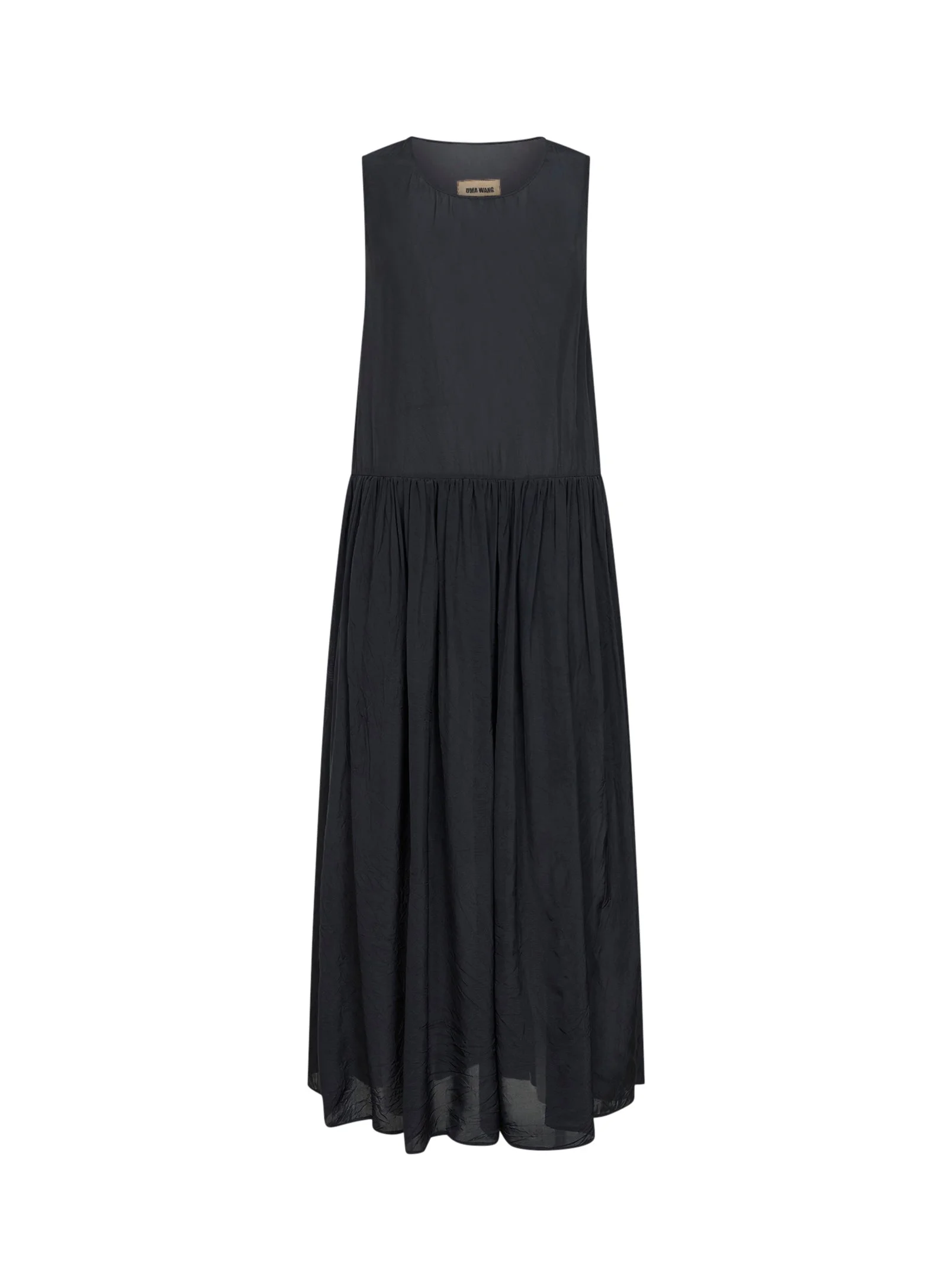 - Round neckline - Wide shoulder straps; sleeveless - Stitching detail at back - Waist-cut with gathered detailing - Fluid skirt - Ankle length - Regular fit - Navy blue color - 100% viscose - Made in italy Synthetic: viscose100 % Made in: Italy Season: P26 UP5007-UW033