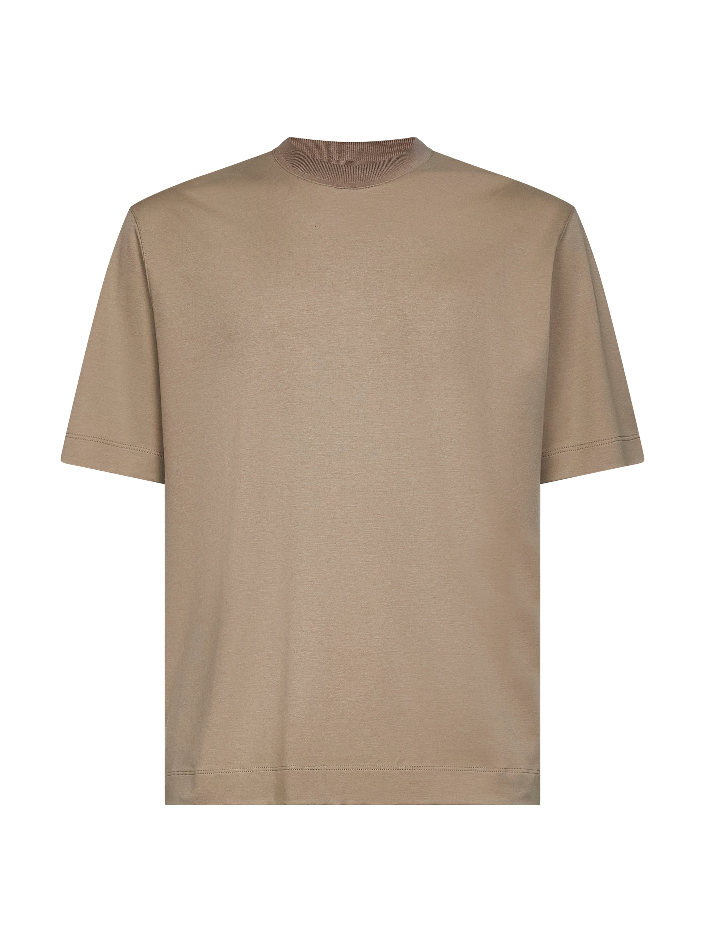 - Ribbed crewneck - Short sleeves - Zegna 232 road brand mark at back - Side slits at bottom with knit trim - Regular fit - Beige color - 70% cotton, 30% silk - Made in italy Natural (Veg): Cotton70 % Natural (other): Silk30 % Made in: Italy Season: P25 UF366A9F734N02