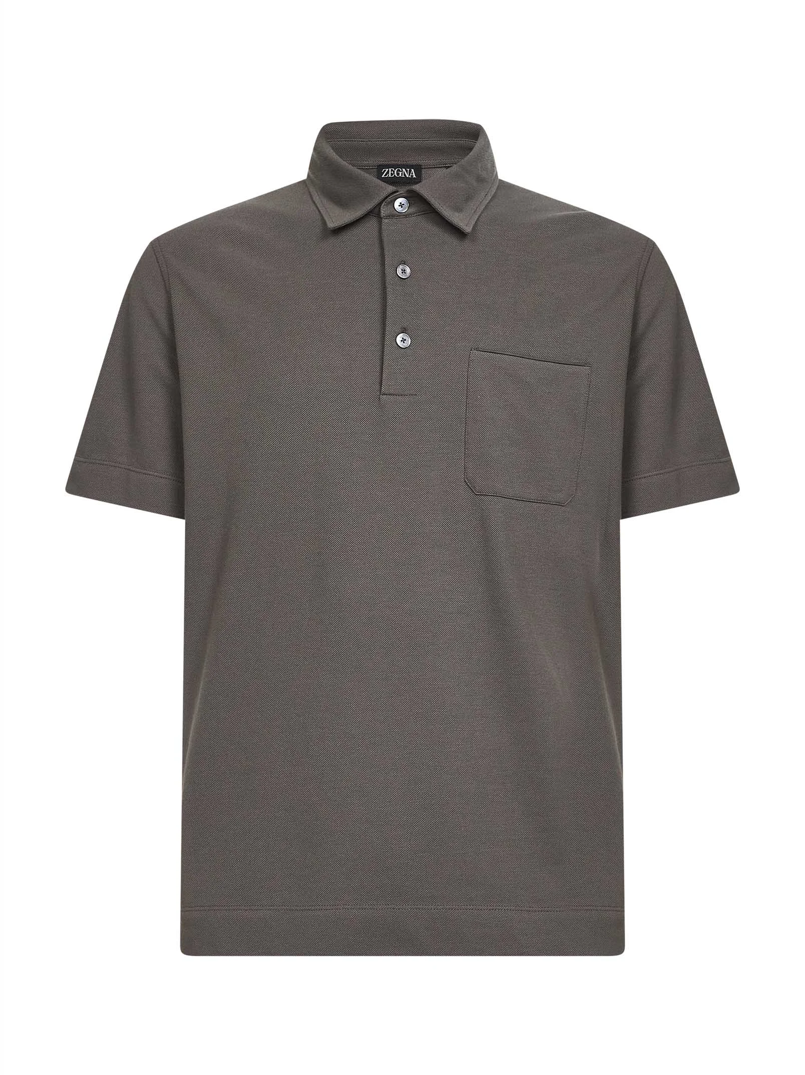 - Front three-button placket - Shirt collar - Short sleeves - Zegna 232 road brand mark at nape - Patch pocket at chest with tone-on-tone piping detail - Straight hem - Regular fit - Dark beige color - 100% cotton - Made in extra eu Natural (Veg): Cotton100 % Made in: Turchia Season: P26 UH392A3H752N07