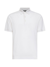 - Front three-button placket - Ribbed polo collar - Short sleeves, ribbed cuffs - Side slits at bottom - Straight hem - Regular fit - White color - 52% cotton, 48% silk - Made in extra eu Natural (Veg): Cotton52 % Natural (Other): Silk48 % Made in: Turchia Season: P26 UH341A3H786N01