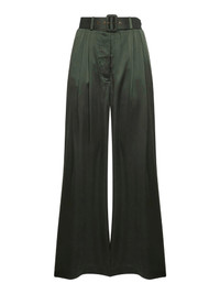 - Covered front closure - High-rise waist with belt loops; adjustable and detachable matching belt at the waist - Side pockets - Double front pleat - Slightly flared bottom - Wide leg - Green color - 100% silk - Made in extra eu Natural (other): Silk100 % Made in: Repubblica Popolare Cinese Season: A25 2151PF25R-DRKG