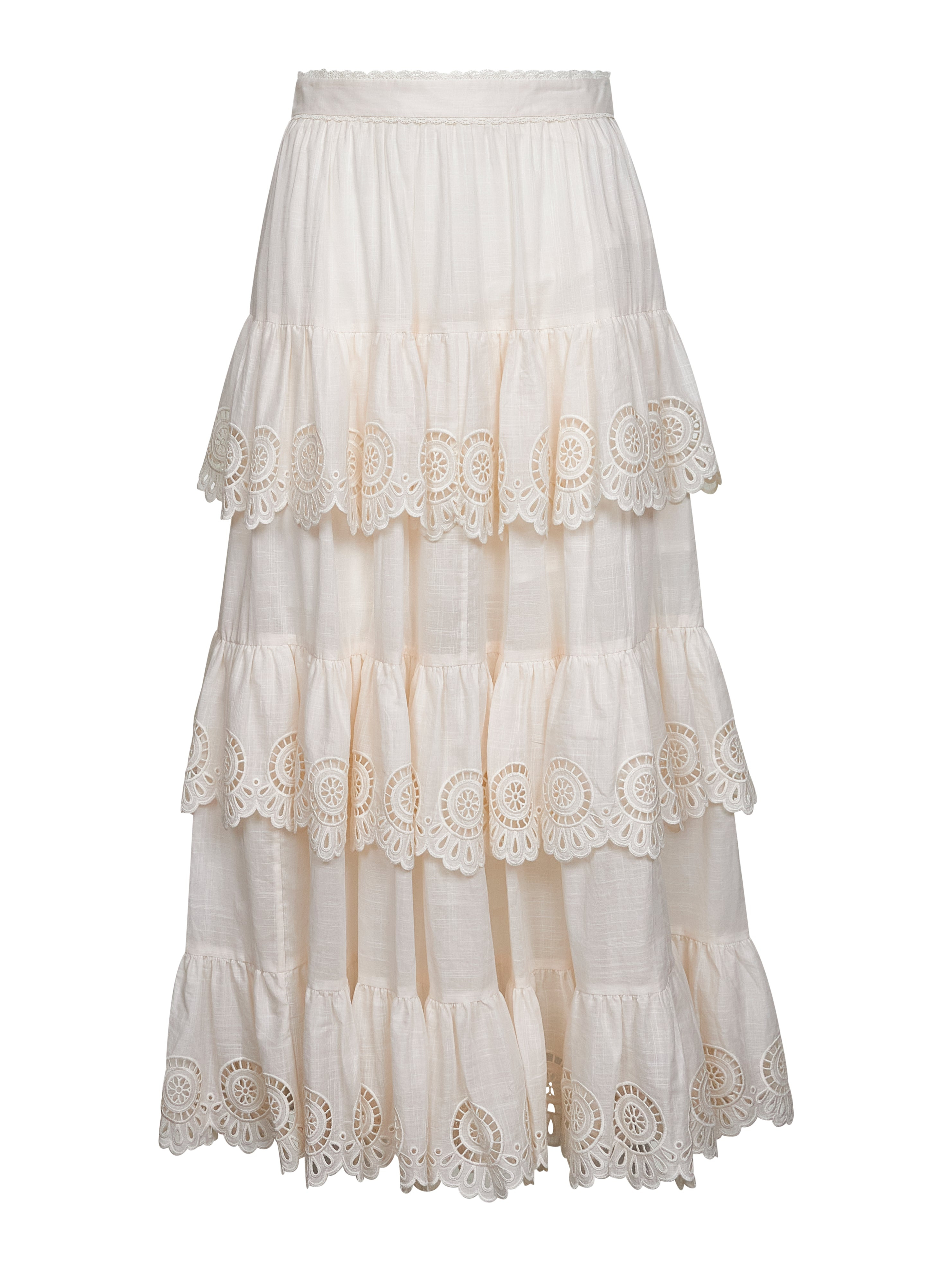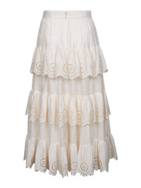Ivory embroidered cotton Lucky tiered midi skirt