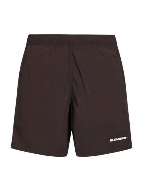 Brown stretch nylon logo swim shorts