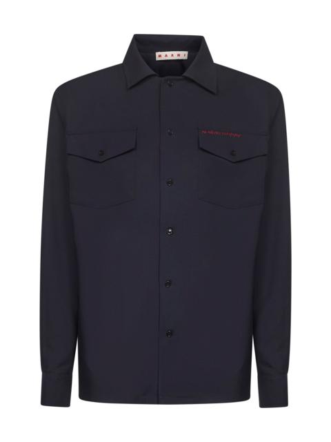 Blue tropical wool Marni Mending embroidered shirt