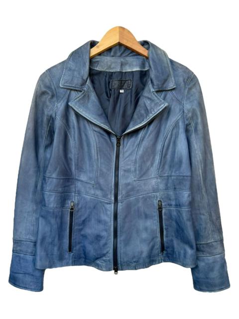 Japanese Brand - Curge Italy Blue Sunfaded Biker Leather Jacket