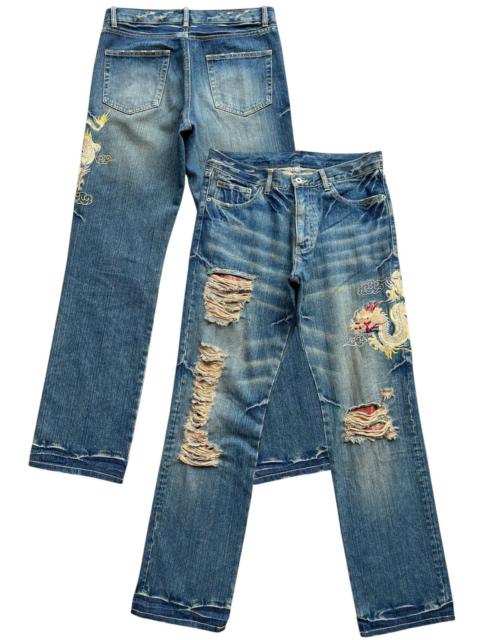 Japanese Brand - Vintage Dragon Sukajan Mudwash Distressed Denim Jeans 33x31