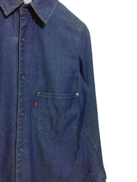 SHOOT ME YOUR OFFER •I do my best to describe all items. All items are sold in As-Is condition. Please keep in mind that this is a used/vintage item so there will be age appropriate wear. Feel free to contact me if you have any questions! •Tag : Levi's Engineered Jeans •Size : on tag S •Made : Japan Manual measurement:- •Pit : 18 inch •Length : 28 inch •Shoulders : 16 inch •Sleeve : 22 inch Condition :- •Status : Used •Scale : 8/10 good vintage condition (refer pictures for details) •Please take a note that items are measured in inches while laying flat. To ensure a good fit, please try measuring a piece in your closet that you would like to fit similarly.
