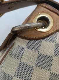 WE GUARANTEE ALL OUR ITEMS ARE 100% AUTHENTIC! The Louis Vuitton Damier Azur Galliera PM bag is a favorite among LV collector's everywhere. Now discontinued, the Damier Azur Galliera PM is highly sought after. This PM is the smallest size of the Galliera family. Details: Brand: LOUIS VUITTON LV style: Galliera PM Retail: $1680 Style: Shoulder Bag Material: Damier Azur Color: White Made: France Date code: SP4039 Made year: 2009 Size: Bag Height: 11" Bag Length: 16" Bag Depth: 7" Accessories: No Accessories Condition: Rank B: Gently used: May have minor corner rubbing, light leather tanning, inside some stain marks. Please see the pictures carefully. Please check the details and pictures before purchase and do not hesitate to ask questions regarding our products or services, we will be more than happy to serve you with the best of our efforts.