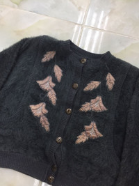 **Mohair-blend Dark Gray Vest-style Cardigan Oversized** Dark gray cardigan knitted in a soft mohair blend with embroidery flowers at the front. Nice design with vest style cardigan. Low dropped shoulders, long sleeves and buttons down the front. Used but still in perfect condition got nothing defect to be state here Manual Measurement (inch) : Armpit : 26" Length : 21.5" $399 or best offer