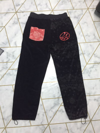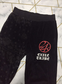 **24Karats Exile Tribe paisley design velvet jogger pants** Nice collaboration between brand & japanese band In a very good condition, except just missing the waist ropes but it's okay because the waist elatic band stretchable in a perfect condition The print "24karats" got some crack (refer photo) Other than that still looking in a good condition Made in China Composition material cotton/polyester/polyurethane Size on label tag is Medium, please refer manual also for more accurate size Manual Measurement (inch) : Waist : 30" - 32" Outseam (full length) : 40" Inseam : 29" Frontrise : 14" $150 or best offer