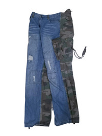 Distressed Denim - Distressed Denim x army cargo pants patchwork style