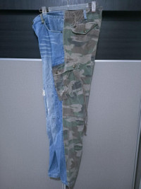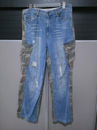 Distressed Denim x army cargo pants.. patchwork 2 tones style..7pockets cargos.. japanese brand massive squad w33*l41. 5.. $299 or best offer