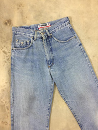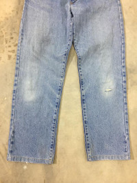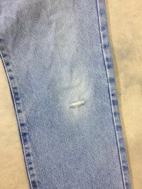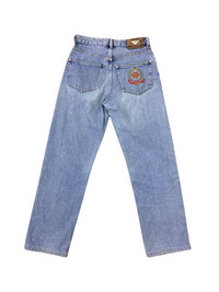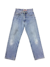 Vintage Up Renoma Paris Uniforme Prestige Distressed Denim.. made in France.. size on tag 28 manual W26*L37 (waist*outseam).. nice design embroided logo at rear pocket.. some stain & little ripped at front knee (refer photos).. $150 or best offer