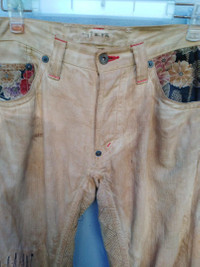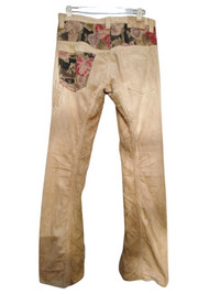 This item is posted on multiple platform. So, if you like it? You want it? Don’t missed it! SHOOT ME YOUR OFFER •I do my best to describe all items. All items are sold in As-Is condition. Please keep in mind that this is a used/vintage item so there will be age appropriate wear. Feel free to contact me if you have any questions! •Tag : Mizra Jeans Kyoto •Size : on tag 32 (cutting boot cut) •Made : Japan •Material : 100% cotton (tie dye) •Style : Sashiko embroidery, Japanese embroidery, boro stitching Manual measurement:- •Waist : 33 inches •Length : 44 inches •Thigh : 12 inches •Knee : 9.5 inches •Opening Leg : 9 inches Condition :- •Status : Used (see photos) •Scale : 8/10 good vintage condition (refer pictures for details) •Please take a note that items are measured in inches while laying flat. To ensure a good fit, please try measuring a piece in your closet that you would like to fit similarly. Payment :- •Accept PayPal only. •PLEASE leave your "Phone number" on the note when making an order, as the shipping company always need it to help delivering.