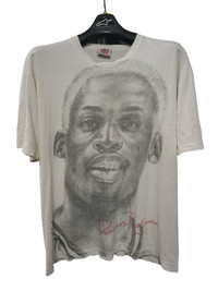 Vintage 90s dennis rodman bighead print shirt distressed.. tag team rated.. got defect unstitch under armpit & tear defect around the neck (refer detail photo).. pit 22.5*28.5.. $390 or best offer