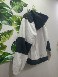 Vintage Reebok windbreaker hoodie jacket 2tones.. very nice design.. pit 24*25(L).. got 1 pinholes (refer last pic.).. $135 or best offer