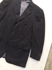**Vtg. 90's Ermenegildo Zegna stripe black wool blazer coat** Single breasted blazer with 3 buttons Made in Switzerland Date production 1997 Good condition Manual Measurement (inch) : Armpit : 21" Length : 32" Shoulders : 19" Sleeve length : 24" $180 or best offer