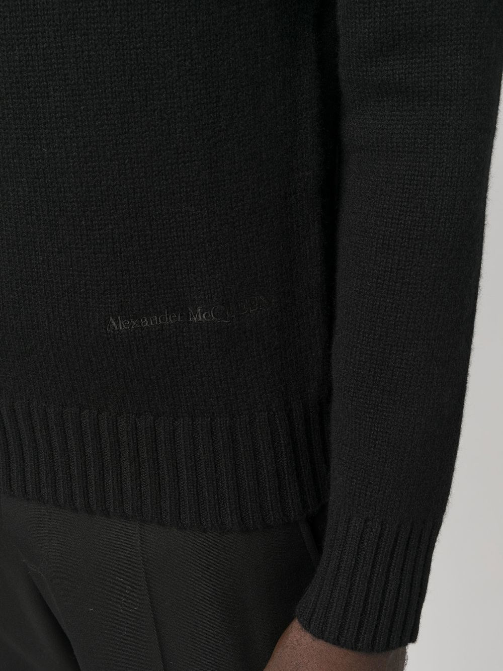 Black cachemire crewneck sweater with tone-on-tone embroidered logo on the hemline. Ribbed cuffs and waist. product code: 712800Q1XFJ1001 COMPOSITION Made in Italy 100% cachemire