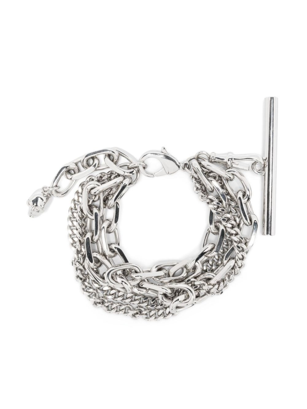 Silver multi-strand chain bracelet, skull pendant and bar with engraved logo. Carabiner closure. product code: 804726J160N0926 COMPOSITION Made in Italy 100% brass