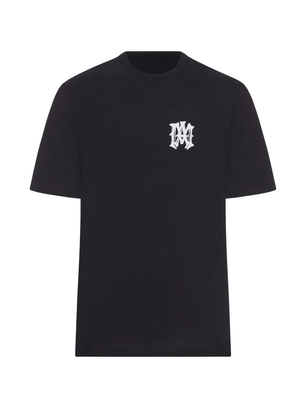 Black T-shirt with short sleeves and contrasting logo print on the chest. product code: AMTOJR1070001 COMPOSITION Made in Italy 100% cotton