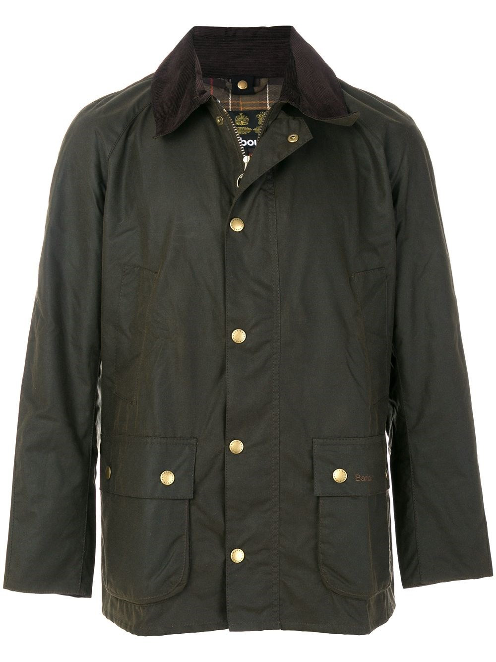 Green jacket with brown ribbed collar, front zip closure and snap buttons. Side pockets with flap, buttons and logo embroidery. product code: MWX0339OL71 COMPOSITION Made in Moldova 100% cotton