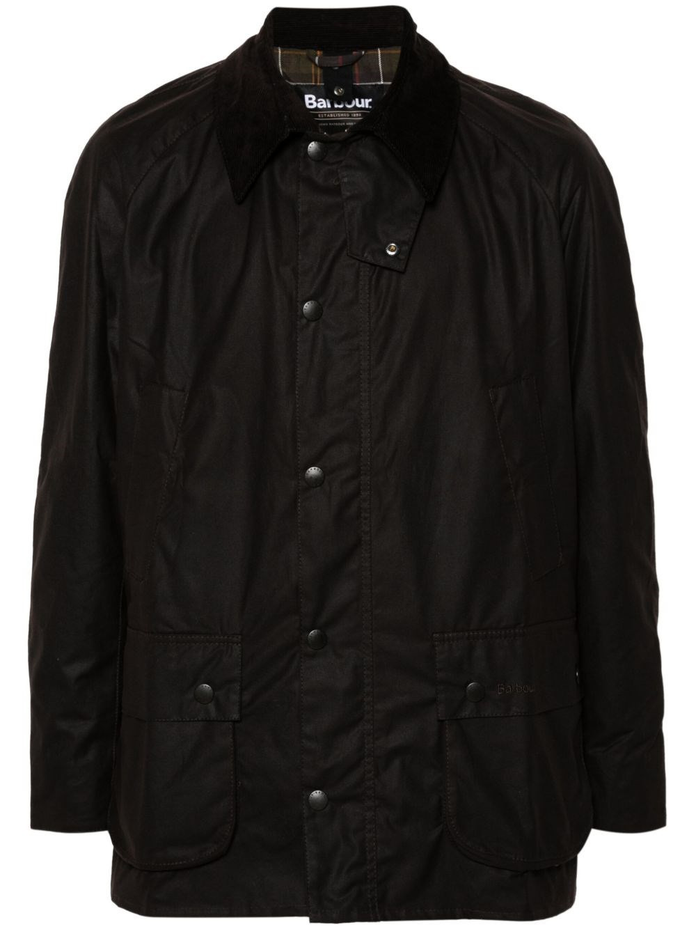 Brown jacket with ribbed collar, front zip closure and snap buttons. Flap pockets, buttons and logo embroidery. product code: MWX0339RU91 COMPOSITION Made in UK 100% cotton