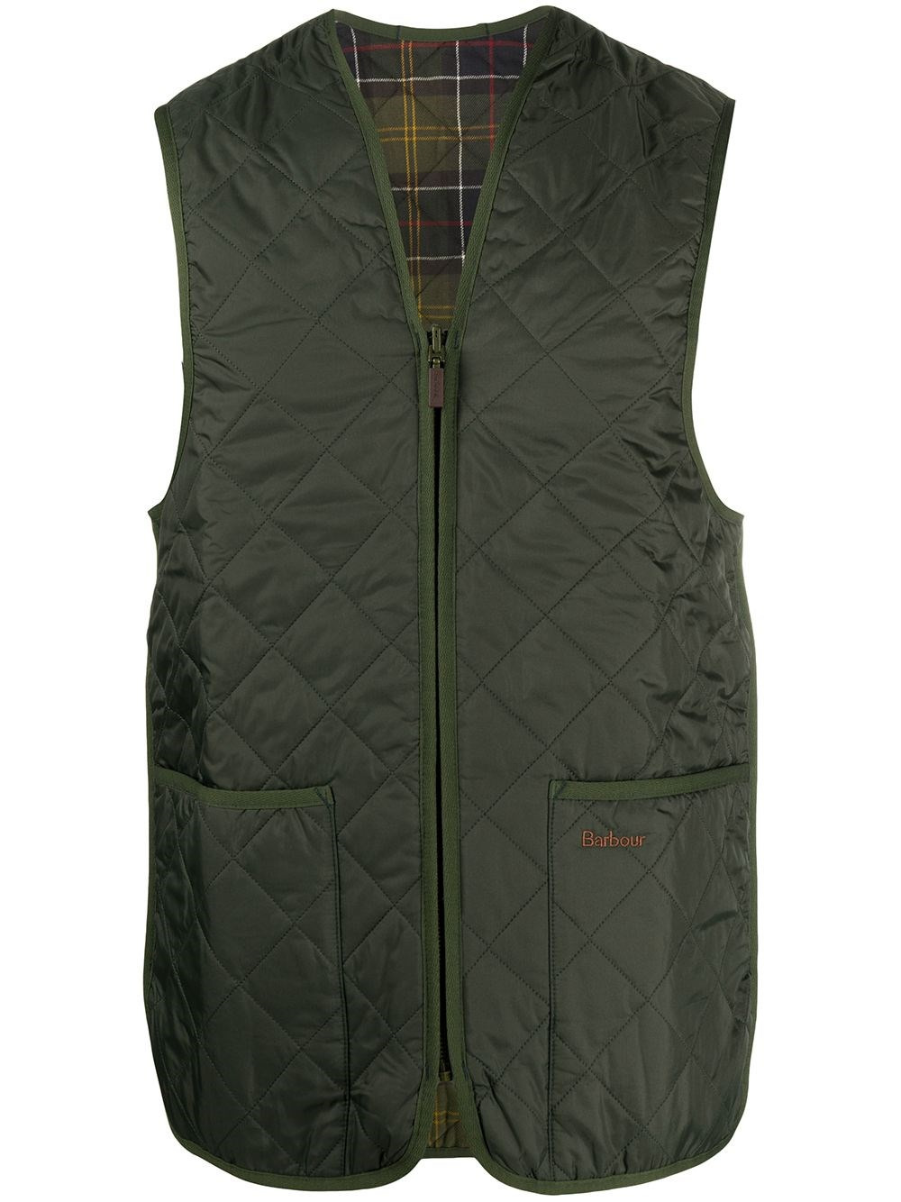 Quilted green vest with zip closure and patch pockets. Front logo embroidery. product code: MLI0001GN92 COMPOSITION Made in UK 100% polyamide