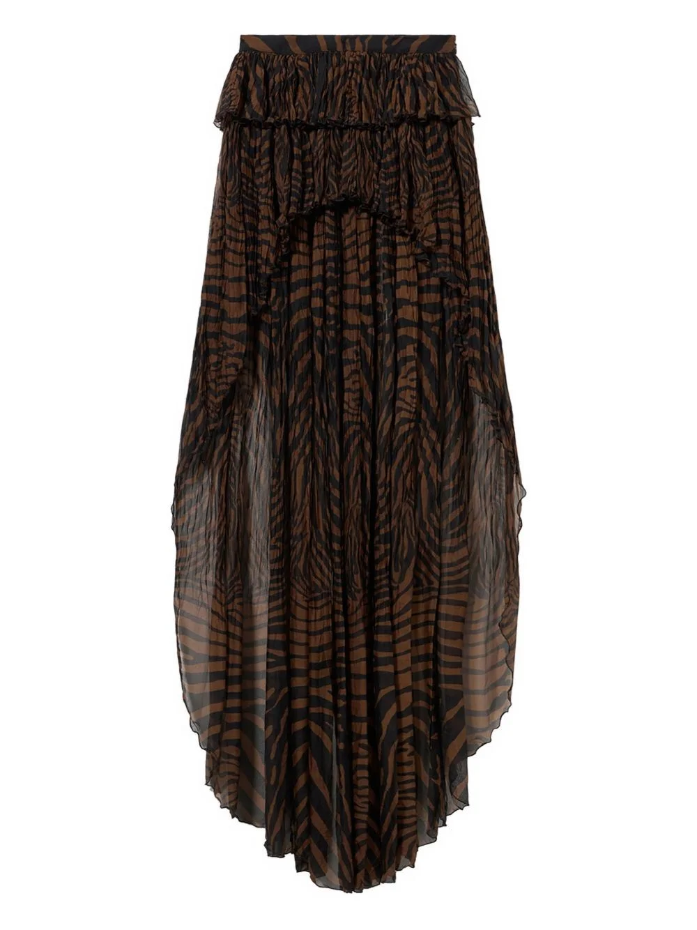Silk creponne skirt with animal print. Asymmetrical flounces overlapping at the waist. Train at the back. Back zipper closure. product code: 2G284AM5179 COMPOSITION 100% silk; Lining: 100% polyester MADE IN ITALY