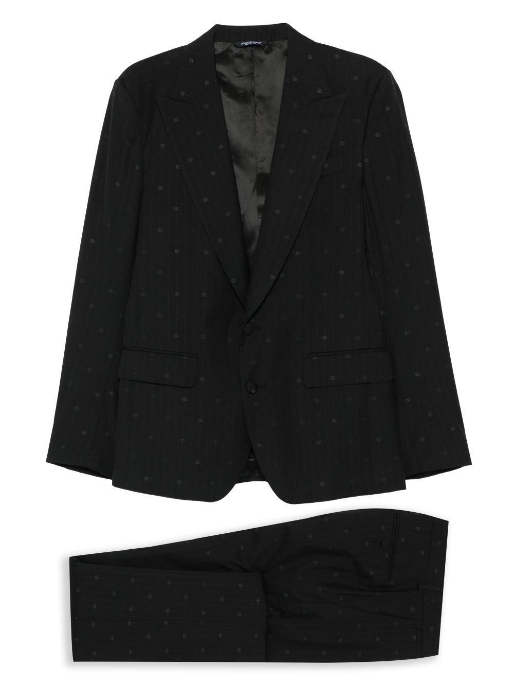 Black single-breasted jacket with classic lapels, front button closure, and all-over tone-on-tone logo detail. Flap pockets. Trousers with front closure, side and back welt pockets. Slim fit. product code: GK036TFR203S8051 COMPOSITION Made in Italy 100% textile
