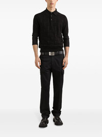 Black polo shirt with collar, jacquard print and tone-on-tone logo on the chest. product code: GXZ02TJBSK5N0000 COMPOSITION Made in Italy 100% silk