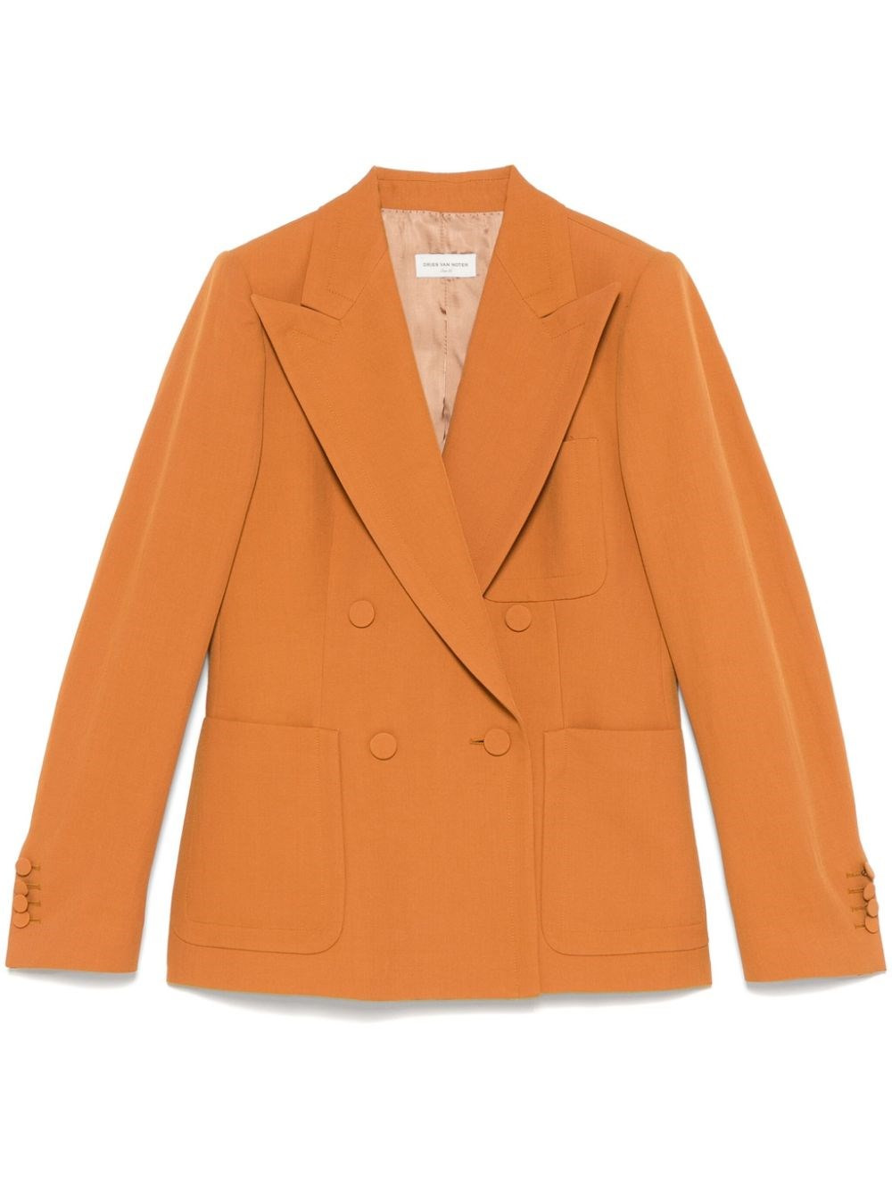 Double-breasted wool blend jacket. Patch pockets on the front. Lined. product code: 2420104039347353 COMPOSITION 63% wool, 23% paper yarn, 14% polyamide MADE IN ROMANIA