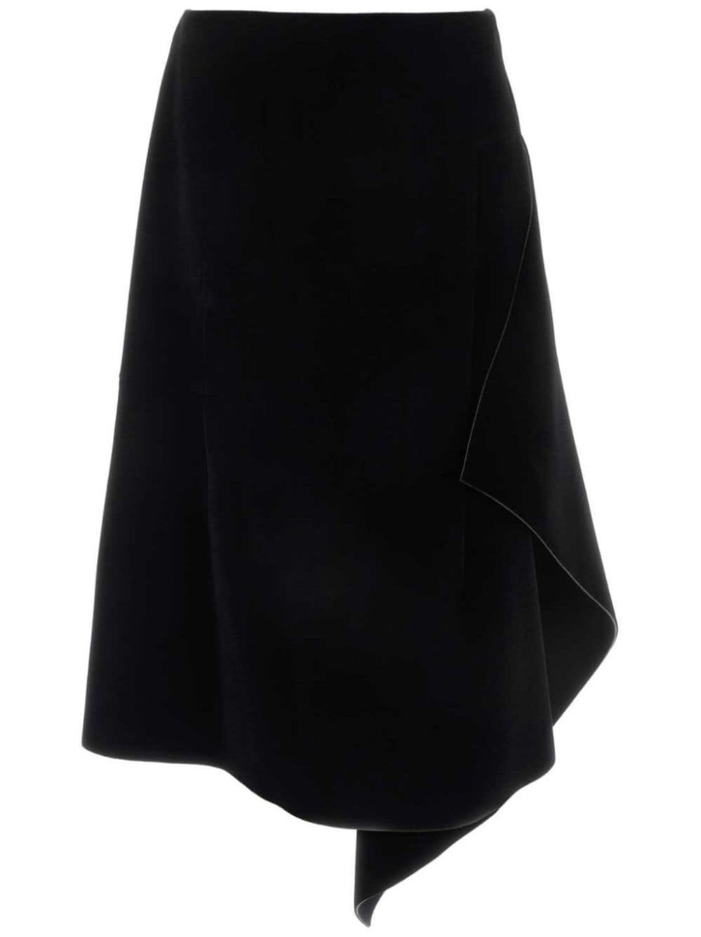 Velvet-effect neoprene skirt. Overlapping panel with draping on the front. Visible zipper closure at the side. product code: 2420108399190900 COMPOSITION 68% nylon, 32% modal. MADE IN PORTUGAL