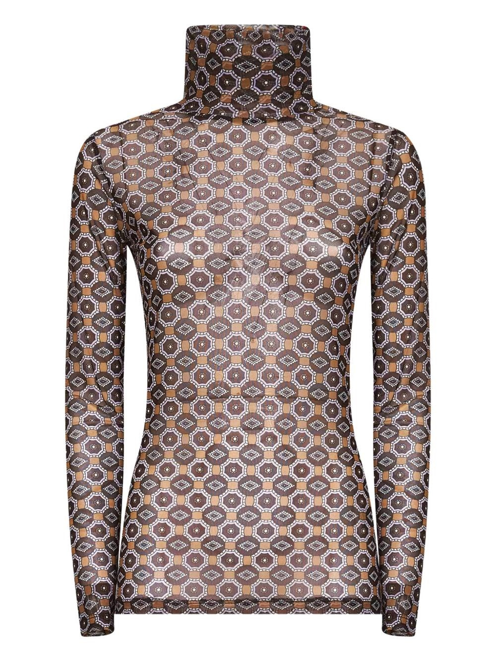 Stretch mesh top with geometric print. product code: 2520111212623703 COMPOSITION 94% polyamide, 6% elastane MADE IN TURKEY