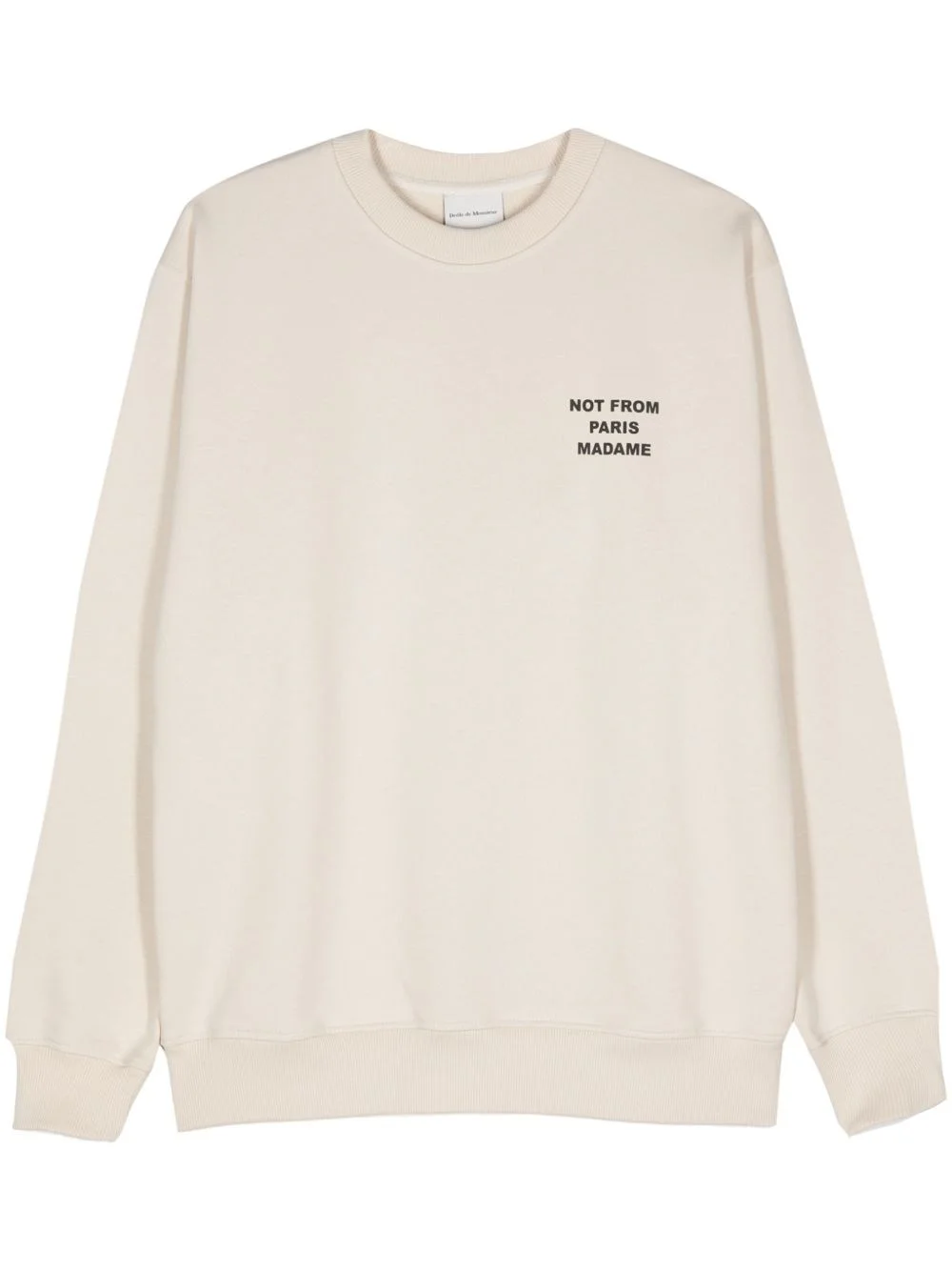 Neutral sweatshirt with contrast print on the chest and back. Ribbed cuffs and waist. product code: SW149CO127MASTIC COMPOSITION Made in Portugal 100% cotton