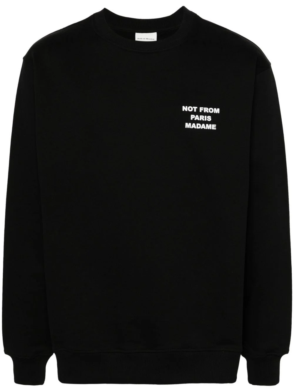 Black sweatshirt with contrast print on the chest and back. Ribbed cuffs and waist. product code: SW149CO127BLACK COMPOSITION Made in Portugal 100% cotton
