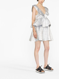 Silver jacquard minidress. V-neck at the front and back. Details featuring rupches. product code: F7867018 COMPOSITION 50% organic cotton, 29% polyester metallic, 21% polyamide MADE IN CHINA