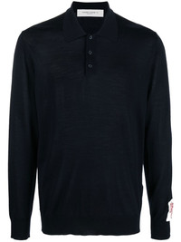 Blue polo shirt with classic collar and buttons. Ribbed cuffs and waist. product code: GMP01353P00104150501 COMPOSITION Made in Italy 100% virgin wool