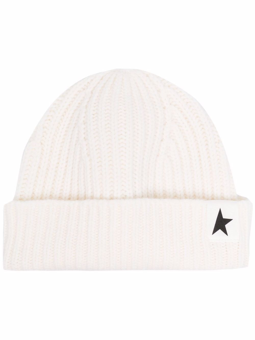 Ribbed wool beanie with contrasting black star. product code: GUP01035P00060110190 COMPOSITION 100% wool MADE IN ITALY