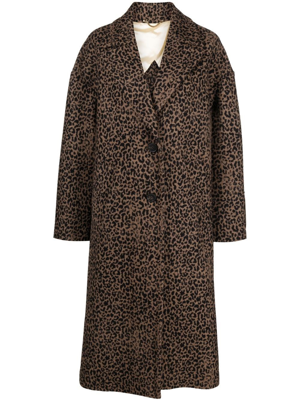 Wool coat with jacquard animalier pattern. Two front pockets. Buttons on the front. Logo patch on one sleeve. product code: GWP00566P00065081399 COMPOSITION 58% wool, 26% polyamide, 16% polyester; Lining: 64% viscose, 36% rayon; Sleeve lining: 100% viscose MADE IN ITALY