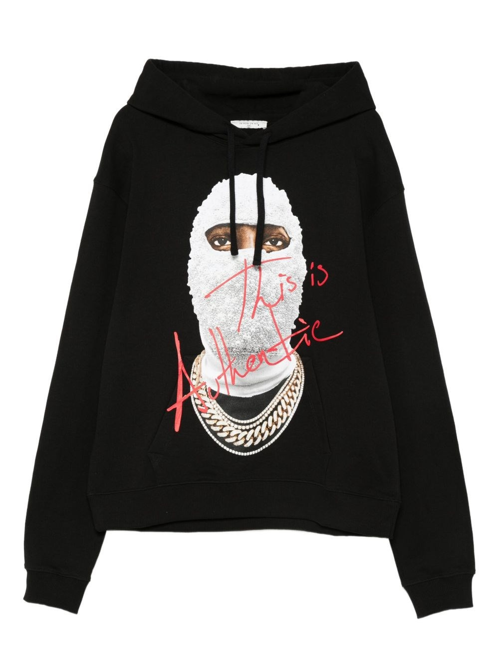 Black hoodie with print on the chest and logo print on the back. Ribbed cuffs and waist. product code: NUW25261009 COMPOSITION Made in Italy 100% cotton