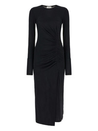 Midi dress in stretch modal with curls. Side split on the front. Asymmetrical hem. product code: RO0349FBC3K01E01BK COMPOSITION 97% modal, 3% elastane MADE IN PORTUGAL