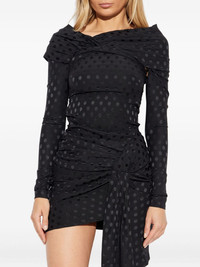 Asymmetrical dress in stretch silk. All-over polka dot pattern. Draped details. product code: RO0903FAC4J04I01BK COMPOSITION 90% silk, 10% elastane MADE IN INDIA