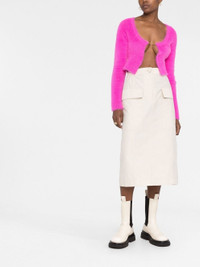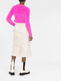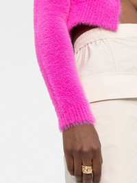 Cropped cardigan with logo clamp. product code: 223KN0102380430 COMPOSITION 98% polyamide, 2% elastane MADE IN ITALY