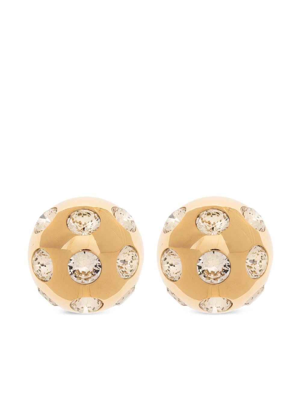 Gold brass earrings in a circular shape with crystals. product code: 251JW7365101283 ORECCH COMPOSITION 100% brass MADE IN ITALY