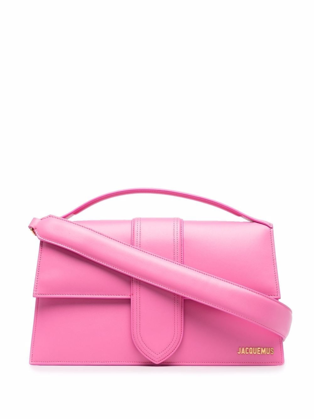 Pink leather bag. Adjustable removable crossbody bag. Single handle. Magnetic button closure under the front flap. Gold metal logo detailing. A patch pocket at the back. Cotton lining featuring a leather pocket. product code: 221BA0143060430 COMPOSITION 100% leather MADE IN ITALY