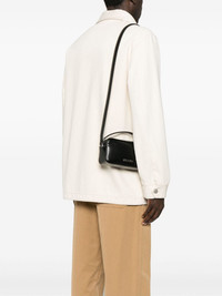 Black bag with zip closure, handle and silver lettering logo on the front. Adjustable and removable shoulder strap. product code: BAM00429AC01C01990 COMPOSITION Made in Italy 100% leather SIZE & FIT Depth 7 cm Height 10 cm Length 20 cm Handle 4 cm