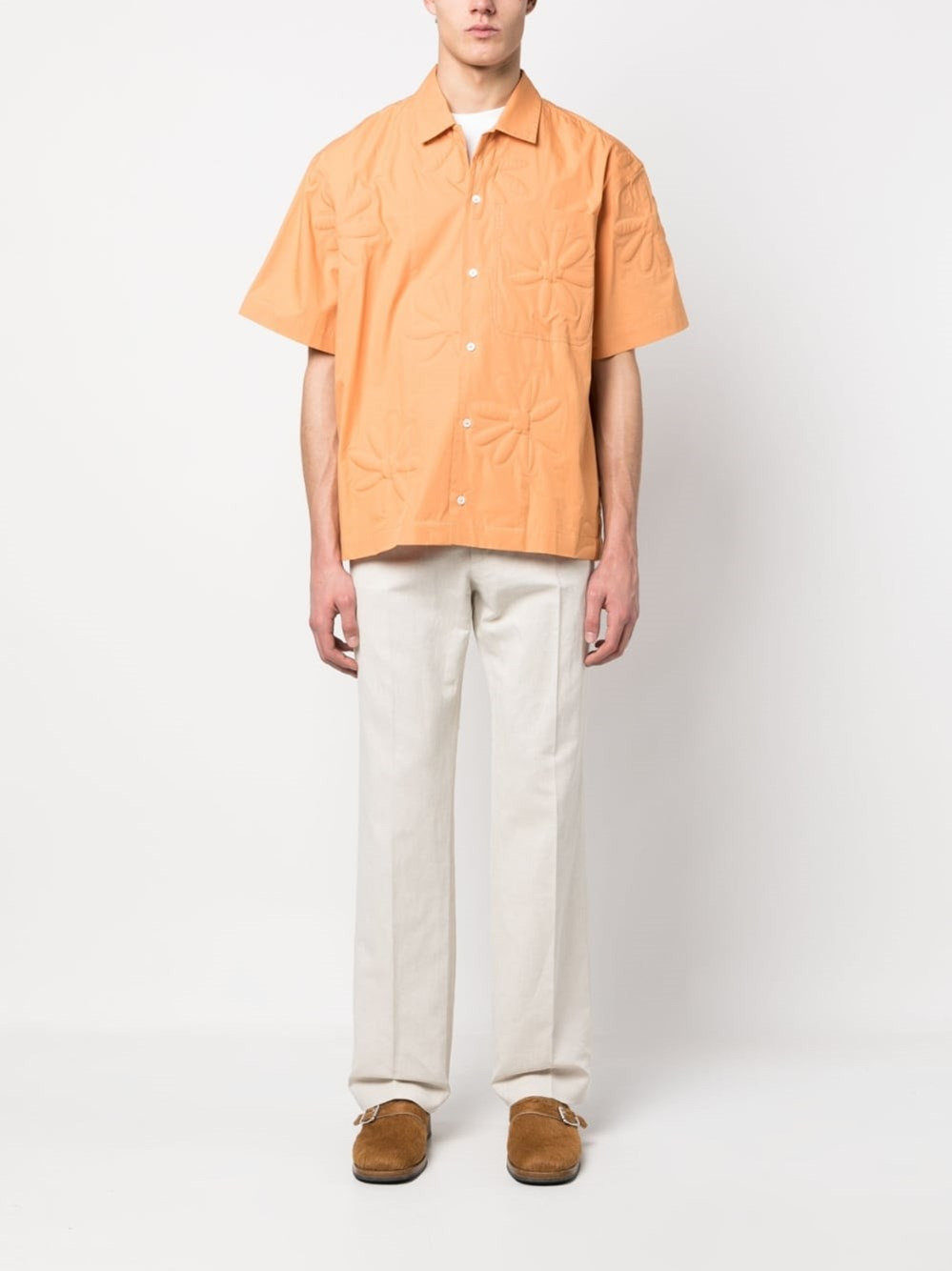White pants with high waist, front closure, side pockets and a straight-leg fit. product code: 235PA0391321130 COMPOSITION Made in Portugal 60% linen 26% viscose 14% polyester