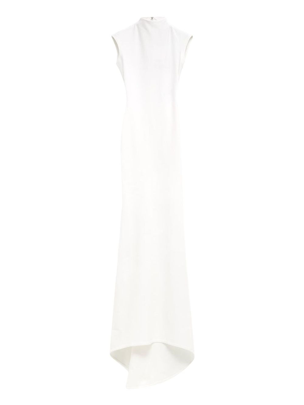 Stretch and compact jersey crepe dress with a tight fit. Integrated mock neck. Cap sleeves. Invisible zip on the back. Curl on the back. Long hem up to the feet with small train. product code: DRW00674AW00476100 COMPOSITION 78% viscose; 16% polyamide; 6% elastane MADE IN PORTUGAL