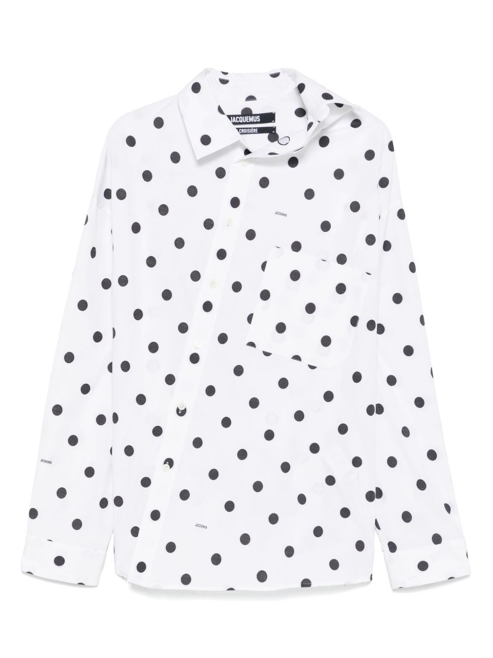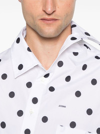 White polka dot shirt with classic collar, front button fastening and breast pocket. Logo print on the chest. product code: 255SH08016959BS COMPOSITION Made in Portugal 100% cotton