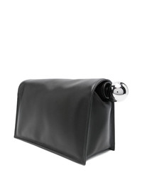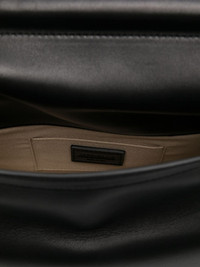 Nappa clutch with logo and gold and silver metal finishes. Upper part unrolls by opening. Magnetic closure. Credit card slot inside. Cotton lined. product code: BAW00356AC27L14990 LA POCHETTE ROND CARRE COMPOSITION 100% Lamb leather; Lining: 100% cotton MADE IN ITALY SIZE & FIT Height: 17 cm; Width: 27,7 cm; Depth.: 12,20 cm